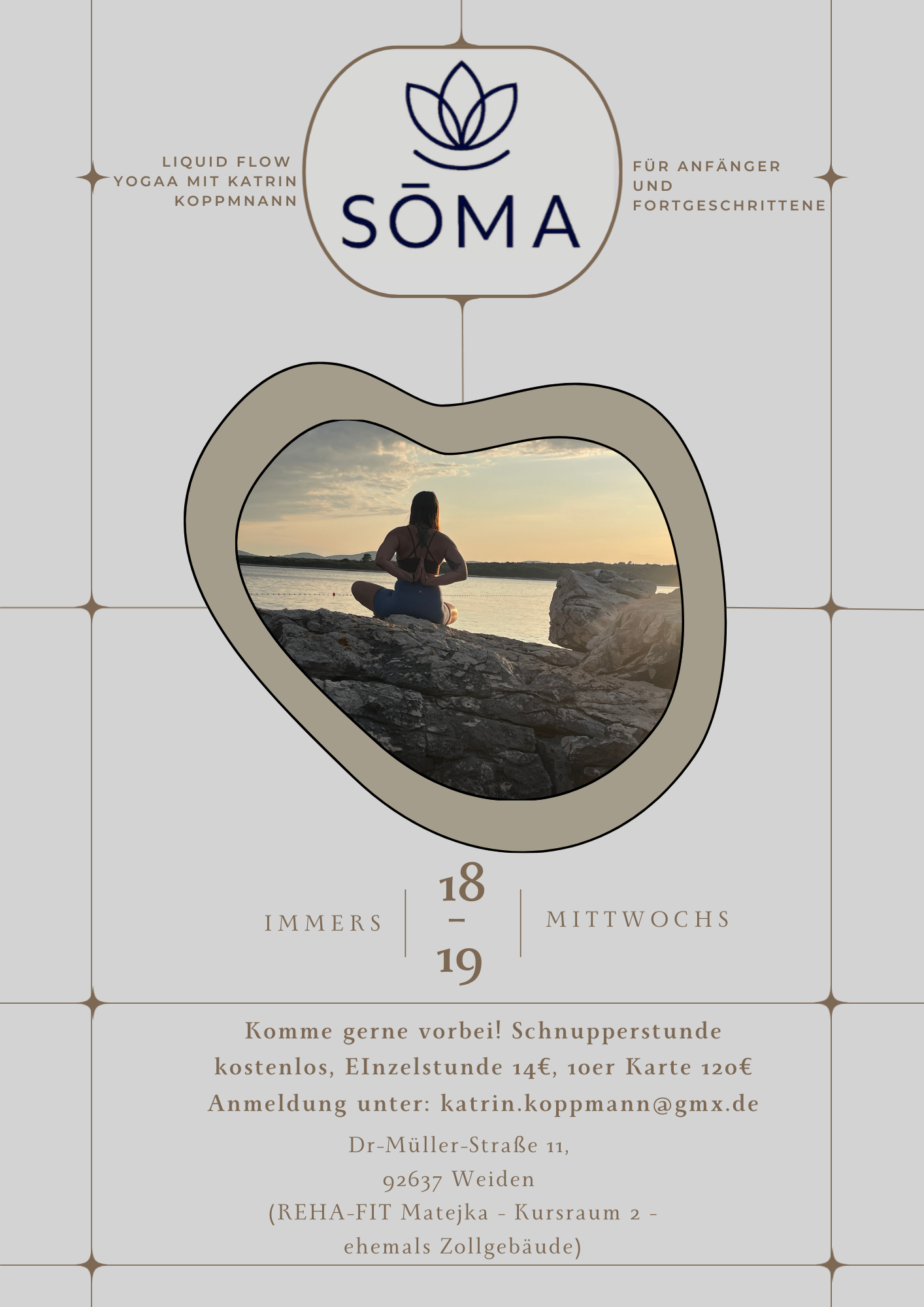 Aktuell findet immer die Liquid Flow Vinyasa Stunde mittwochs von 18-19 Uhr statt.